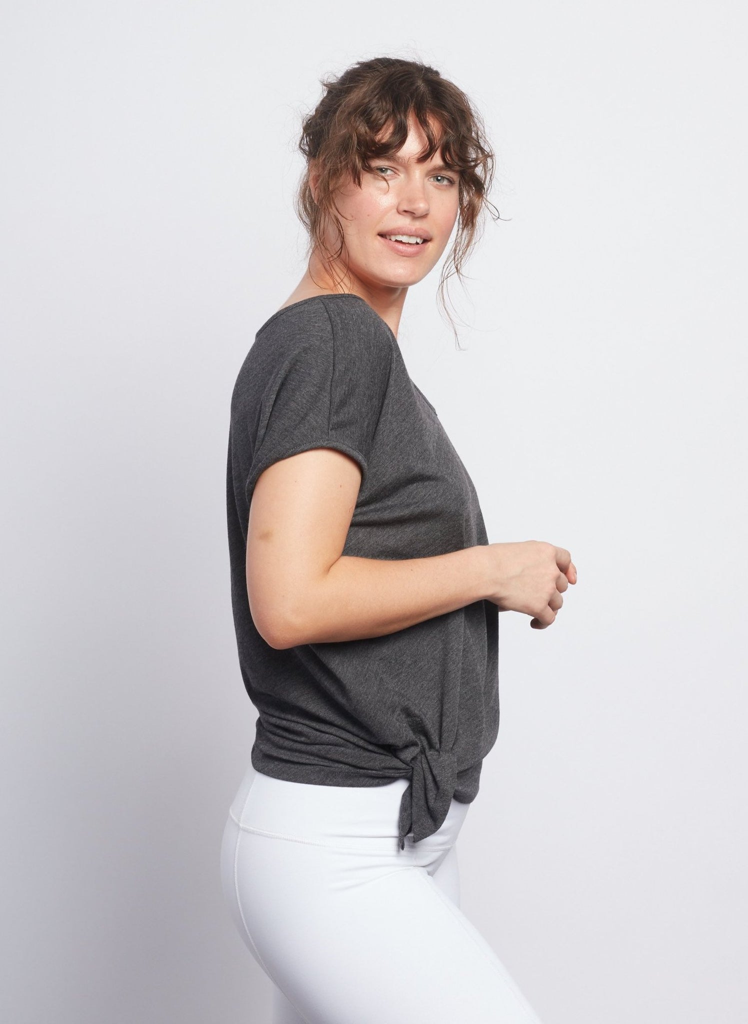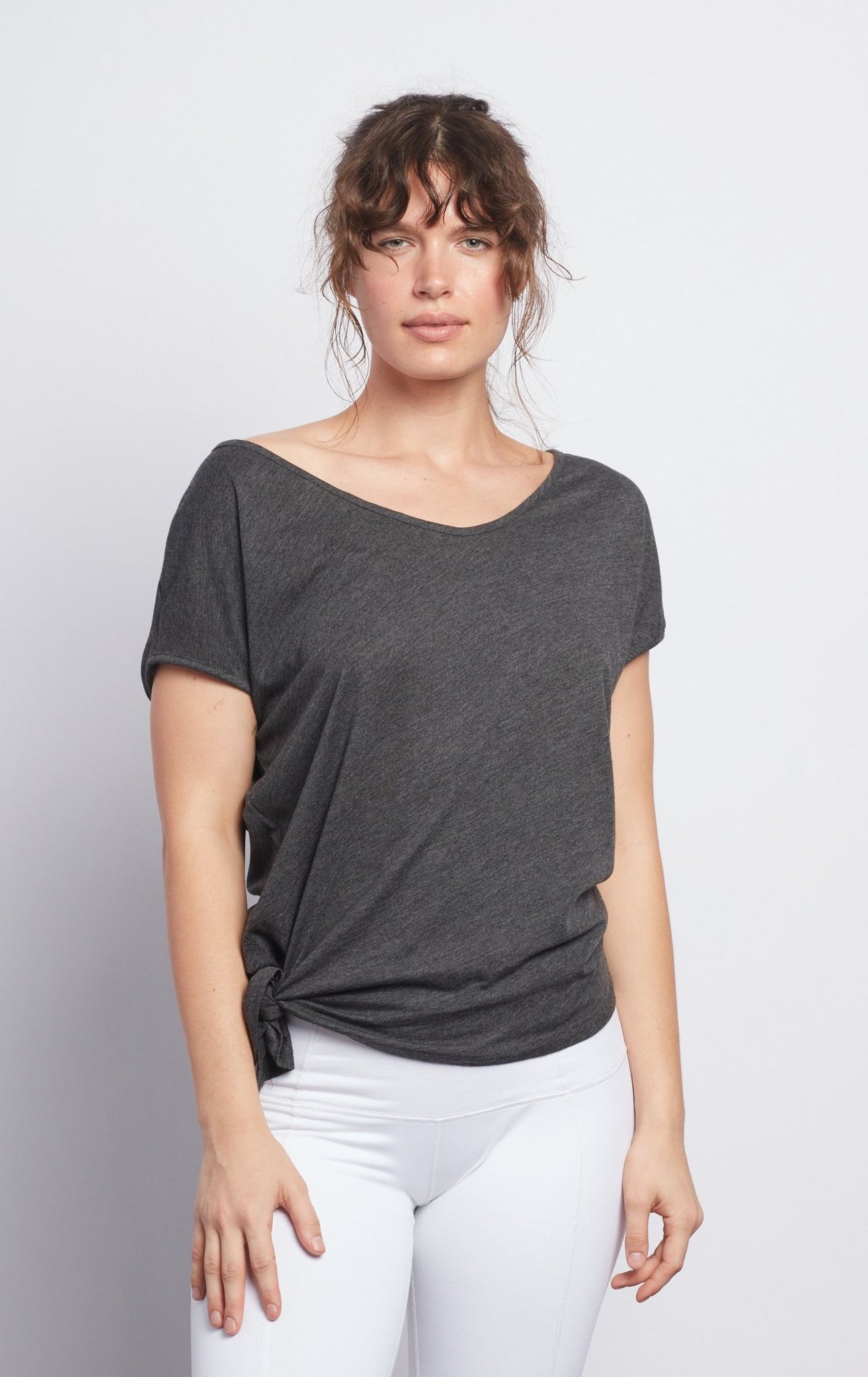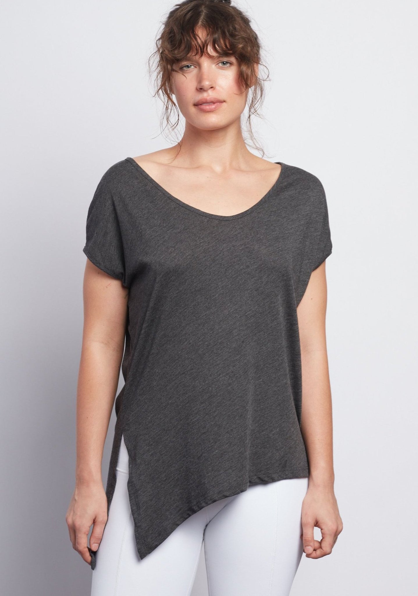 We've created the perfect light-weight tee in a modern, wide-cut Boxy silhouette. The Boxy Tee features a wide neckline and split asymmetric hem that can be worn loose or tied up to one side. Slip it over a tank, or let a strap peek through, and go to and from the studio—or anywhere else—in style.
